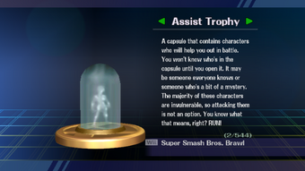 An assist trophy is an item that when grabbed summons a character out of various origins to temporarily aid the holder. Can anyone provide a link to the gameplay video with this assist trophy. New assist trophies in the smash ultimate assist trophy list. Alongside the large number of returning assist trophies in smash ultimate there are plenty of brand new ones to find and use in the game. Assist trophies return in super smash bros. The assist character will stay with you in combat for a few while before disengaging.